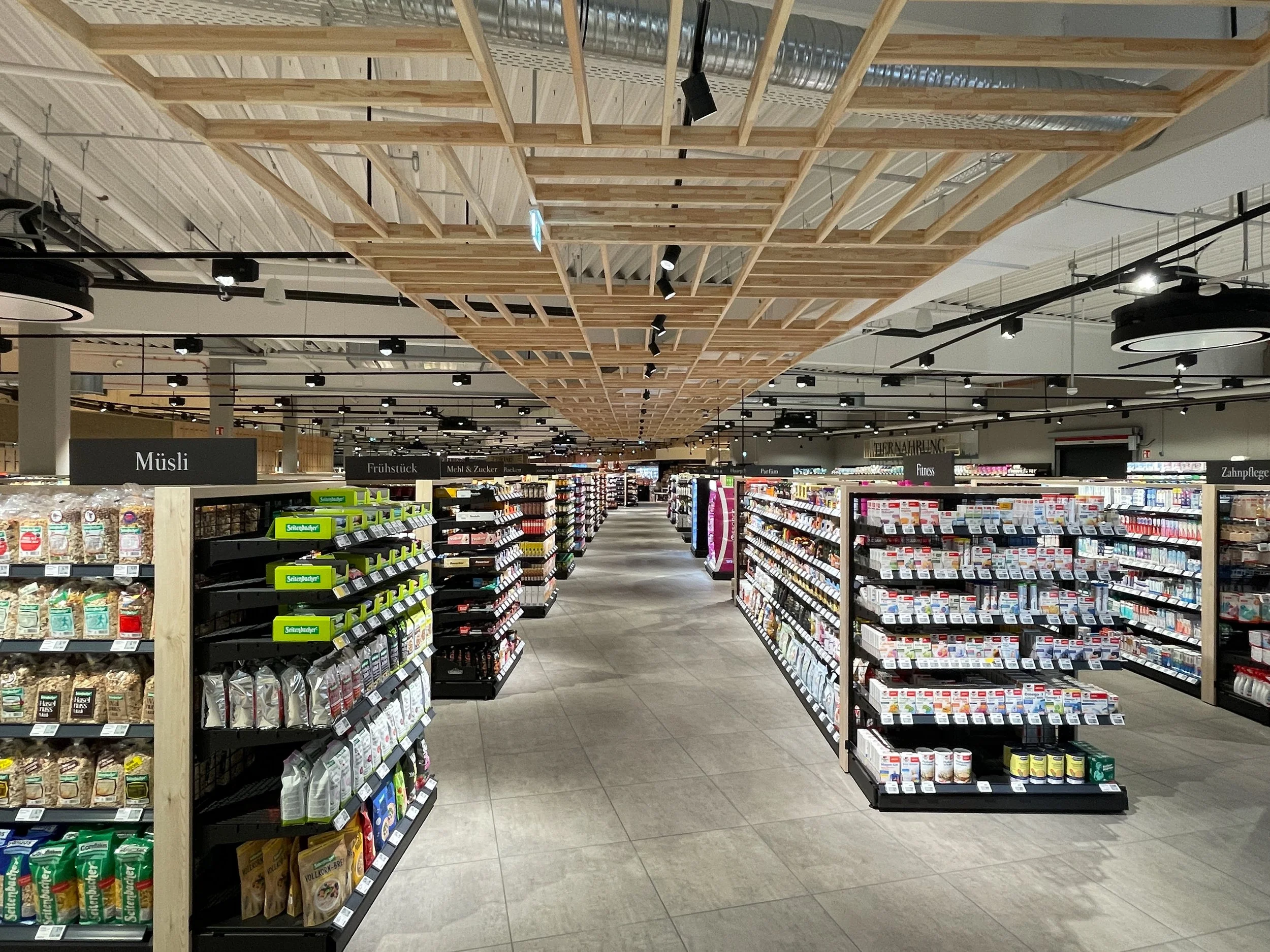 Im laufenden Betrieb wurde nach unserem Konzept und Design die Filiale komplett neu aufgestellt. Auf 3.600 m² netto Verkaufsfläche präsentiert sich der Markt mit allen für Dornseifers typischen Stärken.